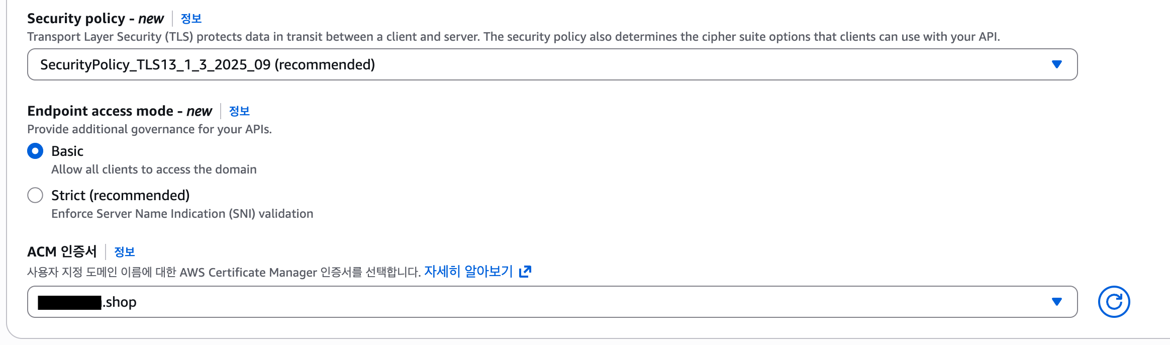 이번에는 엔드포인트 리소스를 이용할 것이고, 도메인 이름으로 한 뒤, 커스텀 도메인주소로 요청을 넣도록 하면 된다.